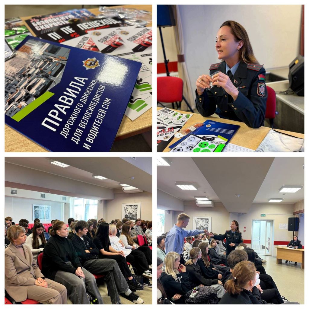 Сегодня в Единый день безопасности дорожного движения сотрудники ГАИ посетили частное учреждение образования «Колледж бизнеса и права».