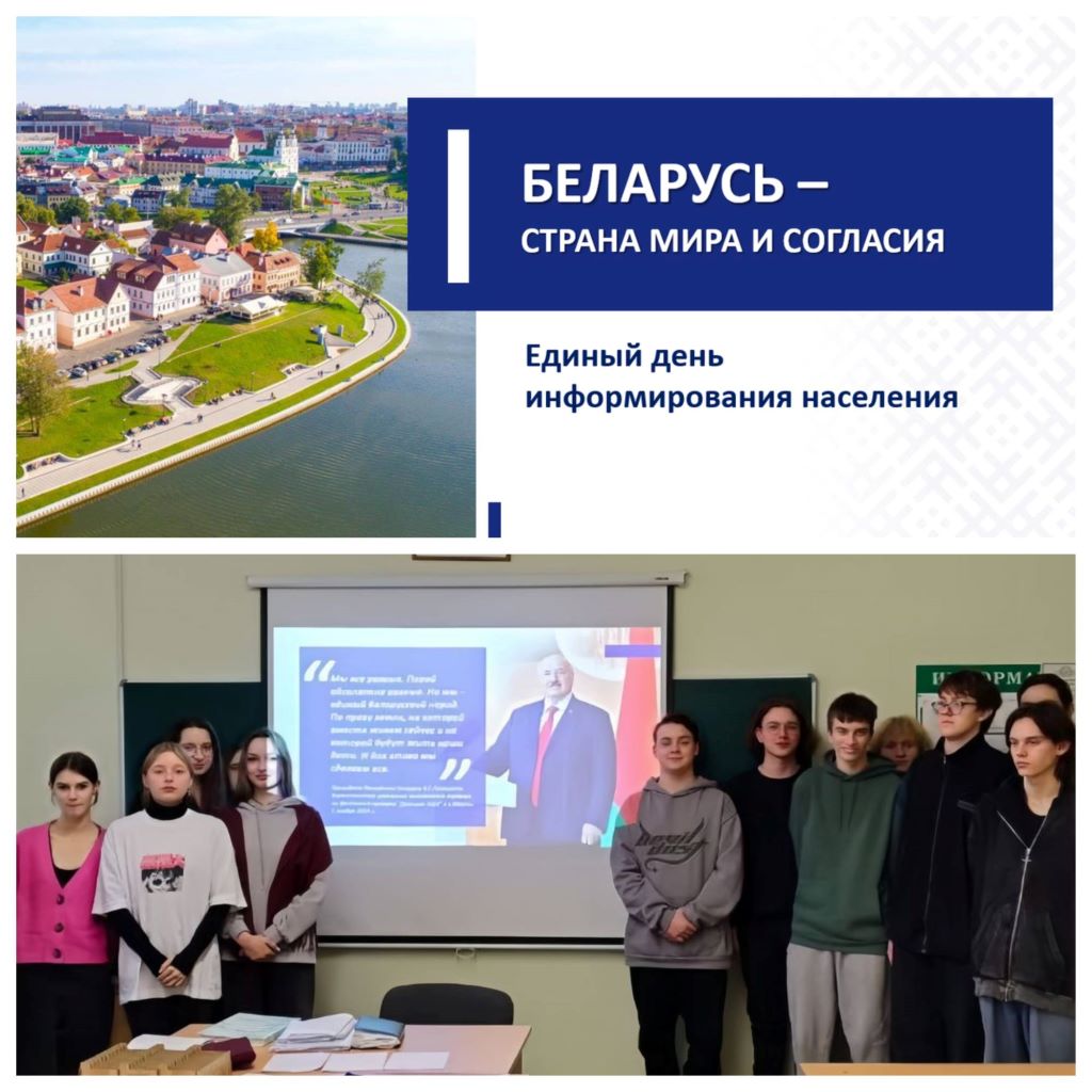 19 декабря в колледже прошли информационные часы в учебных группах, в рамках Единого дня информирования. Представители информационных пропагандистских групп обсудили тему «Беларусь – страна мира и согласия».