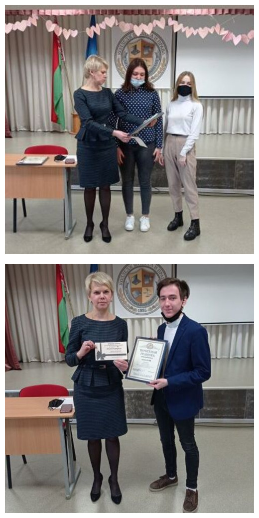 26 февраля заместитель директора по воспитательной работе колледжа Алексеенко Инна Васильевна провела награждение почетными грамотами, грамотами и призами кураторов и представителей учебных групп, которые стали победителями и призерами смотра-конкурса на лучшую группу по результатам 2019-2020 учебного года.