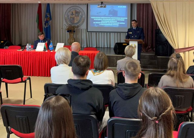 На встрече присутствовал прокурор Фрунзенского района г.Минска старший советник юстиции, который в своем выступлении проинформировал, о количестве возбужденных уголовных дел о геноциде в г.Минске, в рамках уголовного расследования. Выступающий подчеркнул, что проводимые следственные действия показывают масштаб зверств нацистов и их пособников. Рассказал о Мемориалах памяти жертв геноцида мирных граждан, расположенные на территории г.Минска.