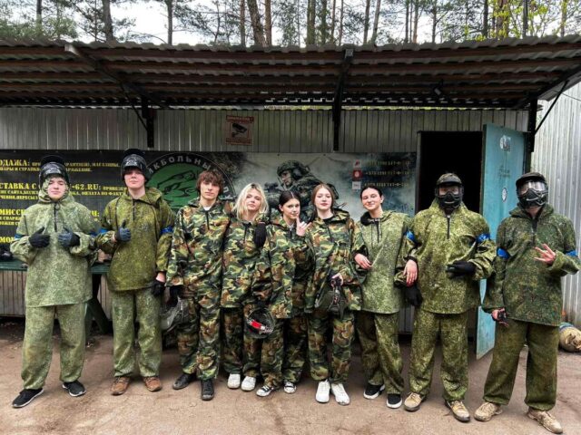 Ребята в компании своих друзей сыграли в пейнтбол. Во время игры они смогли проверить свою выносливость и стессоустойчивость, а также поработать над системой развития координации движений.
