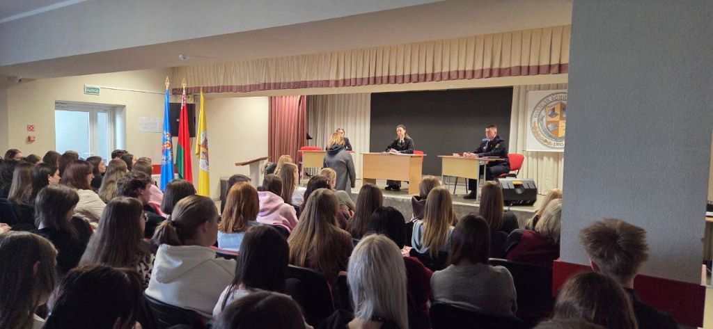 В рамках взаимодействия с органами судебной власти в актовом зале колледжа состоялось выездное судебное заседание. Под председательством судьи Варакса Ю.В. было рассмотрено уголовное дело по части 1 статьи 205 Уголовного кодекса Республики Беларусь.