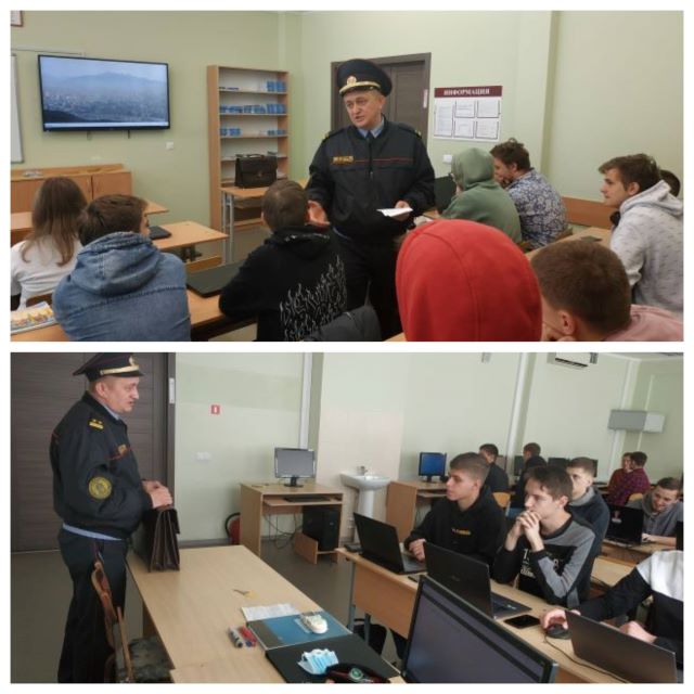 О соблюдении дисциплины и законности со стороны молодых людей сегодня вел беседу с учащимися выпускного курса отделения информационных технологий заместитель начальника отдела Департамента охраны Фрунзенского района г. Минска Романчик Владимир Степанович.