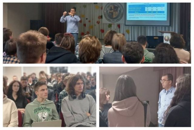 Маковский Михаил Леонидович познакомил ребят со специальностями, по которым ведется сокращенное обучение, довел до учащихся информацию об итогах приемной кампании 2023 года, условиях и правилах поступления в институт в 2024 году.