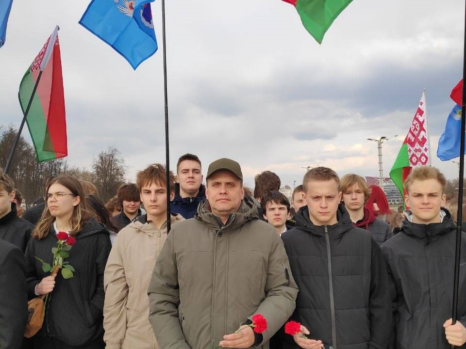 Программа дня началась с важной патриотической акции. Вместе с руководителем по военно-патриотическому воспитанию Гавриленко И.А. участники возложили цветы к стеле «Минск — город-герой». Минутой молчания ребята почтили память героев-победителей, подаривших нам мирное небо и независимость.